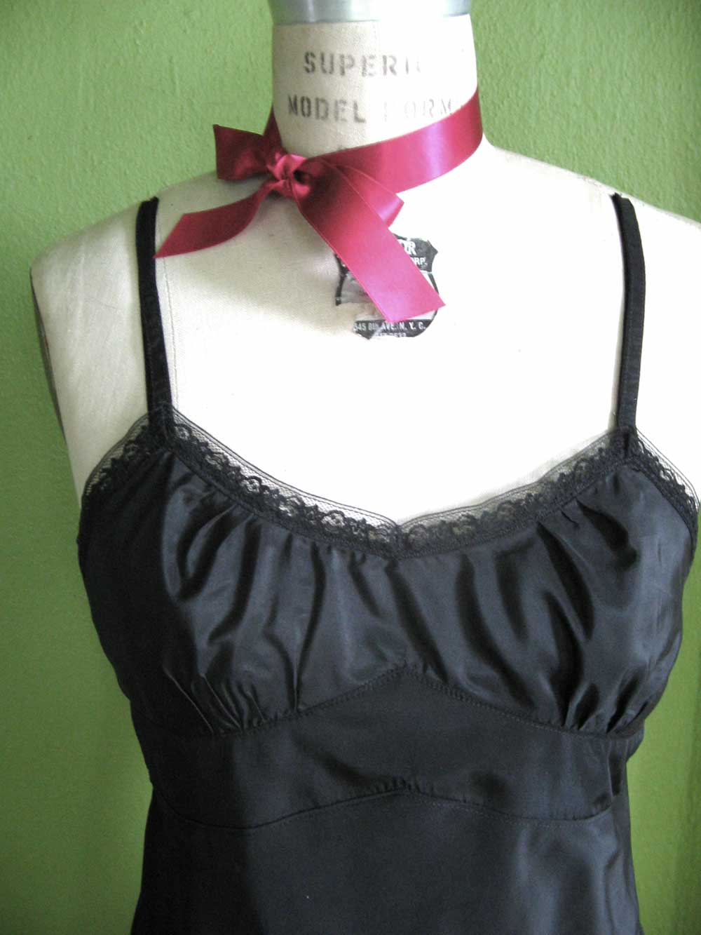 and the finishing touch: a velvet bow. i love bows, and would add them to everything. it just makes a nice finishing touch. now i have a nice new slip that should last me for years, and it only took an afternoon.