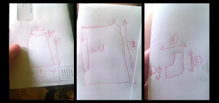 I wrote a tutorial on twitter for a friend on how to make a sack dress for the extreme heat. I drew the schematic on the back of an envelope with a dull red pencil.